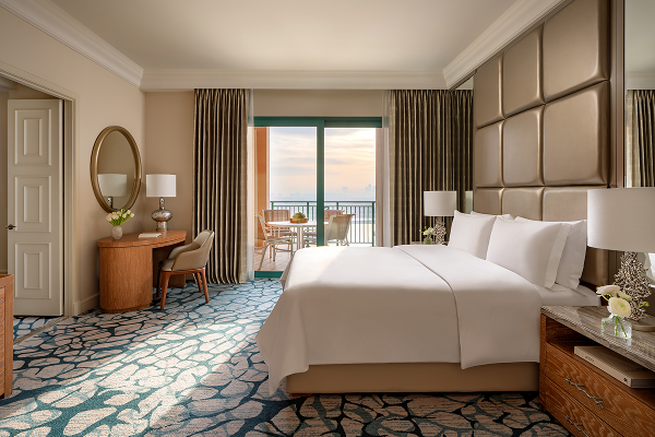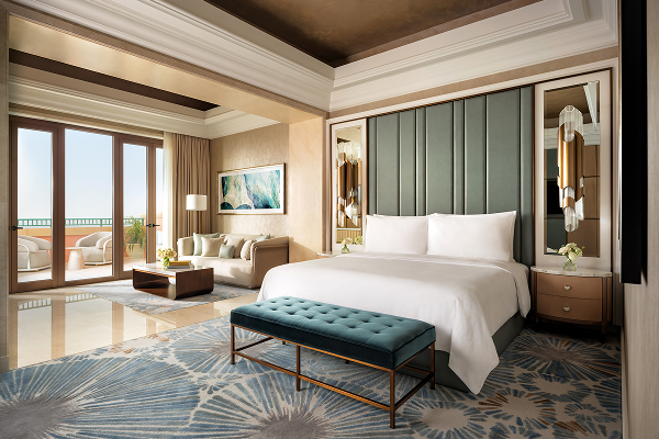 2 Grand Atlantis Suite (429 м², макс. 5 взрослых + 1 ребенок или 4 взрослых + 2 ребенка до 14 лет, виртуальный тур) — вид на Arabian Sea/Palm Island.