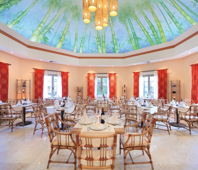 2 общих ресторана («шведский стол»); 4 а-ля-карт ресторана: рыбы и морепродуктов Mare Nostrum, японский Kyoto, итальянский Capri, стейк-хаус Santa Fe; 2 снэк-бара гриль-ресторана – Mariachi и Palmeras