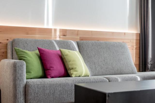 DBL L (~30 м2): 1 двуспальная кровать, гостиный уголок с двуспальным диваном, балкон. Максимальное размещение 2 взр. и 2 ребенка