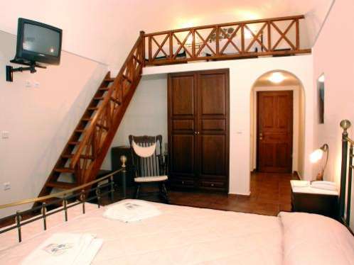 в центре острова Санторини, в тихом районе г. Фира, недалеко от отеля магазины, кафе, рестораны и ночные клубы