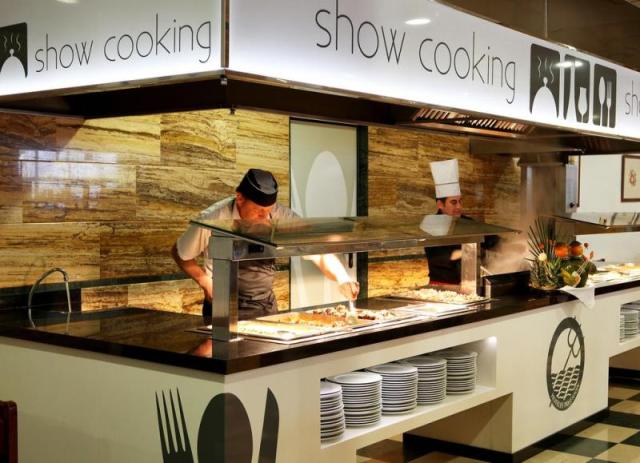 в ресторане курортного комплекса Poseidon представлен большой выбор средиземноморских блюд, а также проводятся тематические вечера и осуществляется приготовление блюд в присутствии клиентов. Обслуживание осуществляется по системе «шведский стол». В числе прочих блюд подаются безглютеновые блюда