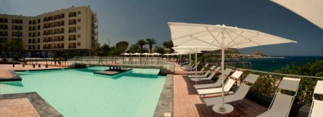 340 номеров; 3 бассейна: детский, взрослый (пресная вода), бассейн у моря (с морской водой), wi-fi, парковка (€)