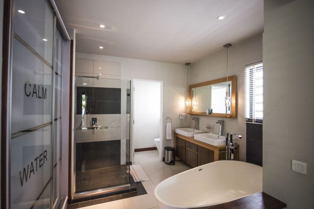 Ванные комнаты: банные полотенца, туалетные принадлежности, гостевая ванная комната, фен, зеркало, тропический душ, отдельный туалет