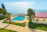собственный песчано-галечный пляж в 20 м от пансионата; лежаки и зонтики