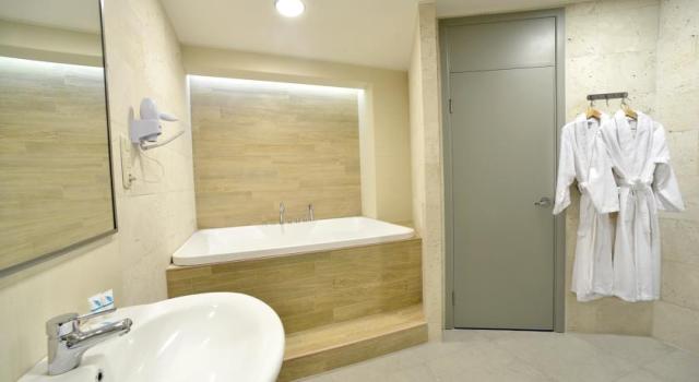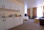 ванная комната, фен, косметические принадлежности, кондиционер, телефон, ТВ, холодиньник, набор для приготовления чая/ кофе
