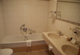 ванная комната с ванной или душем, телефон, ТВ, мини-бар, фен, купальные халаты