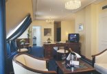 Junior Suite: зрительно разделенные спальная и гостевая зоны, ванная комната отделана мрамором
