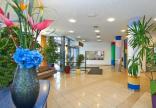 90 номеров; ресепшн круглосуточно, Wi-Fi, супермаркет, камера хранения багажа, услуги по бронированию/ продаже билетов, торговый автомат, парковка (€), терраса, сад