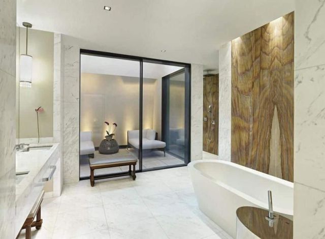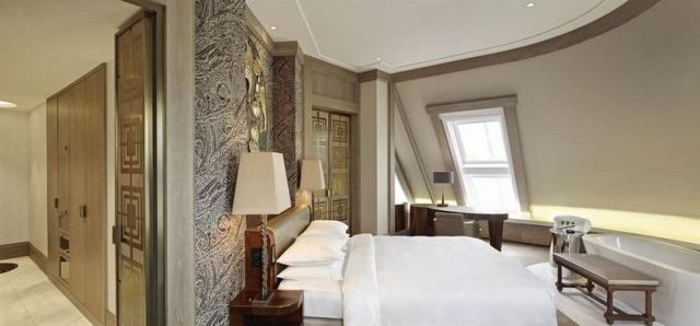 просторная ванная комната с отдельной ванной и душем с эффектом тропического дождя, эксклюзивные туалетные принадлежности, фен, халаты/ тапочки, Wi-Fi, спутниковое ТВ, телефон, панель управления температурой и освещением, сейф, просторное рабочее место с креслом, увеличивающее зеркало, банные полотенца из 100% хлопка, мини-бар, антиаллергенные подушки, светорегуляторы, уборка дважды в день