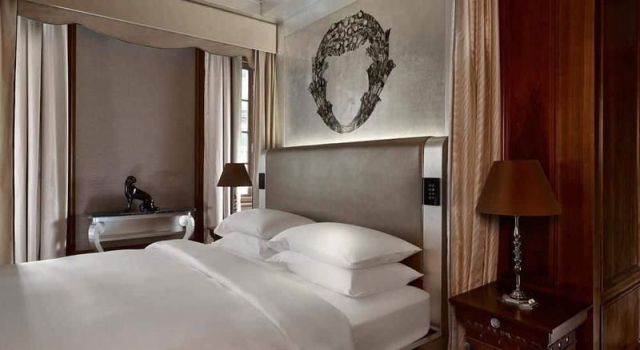 143 номера (35-170 м2); закрытый бассейн, многоязычный персонал, камера хранения багажа, обмен валюты, услуги консьержа, индивидуальная регистрация, услуги химчистки, прачечной и глажения одежды (€), Wi-Fi, трансфер (€), аренда автомобилей, магазины, Room Service 24, экскурсионное бюро, услуги по продаже билетов, парковка (€)