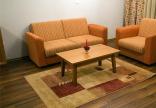Apartment: гостиная с мягкой мебелью и спальня, разделенные дверью