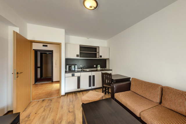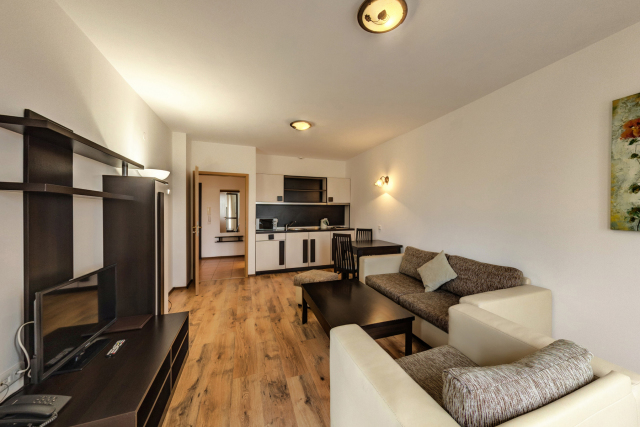 Современный отель, построенный в 2011 г., расположен у подножия горы Пирин недалеко от подъемника, в спокойной части курорта и представляет собой апарт-комплекс с прекрасно оборудованными номерами.