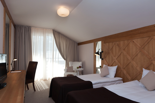 193 номера; открытый бассейн (в летний период), закрытый бассейн 28°C, SPA-центр (€), сейф на ресепшн (€), Интернет-клуб (€), Wi-Fi (€), обмен валюты, парковка (€), камера хранения собственного горнолыжного снаряжения, транспорт до подъемника