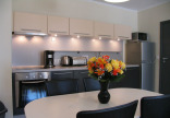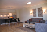 ванная комната, телефон, ТВ, Интернет (€), сейф (€), кондиционер, полностью оборудованный кухонный блок (посуда и столовые приборы, электрочайник, кофеварка, тостер, электропечь, духовка, вытяжка, микроволновая печь, холодильник), гладильная доска, сушилка для белья, фен, напольное покрытие – паркет, балкон