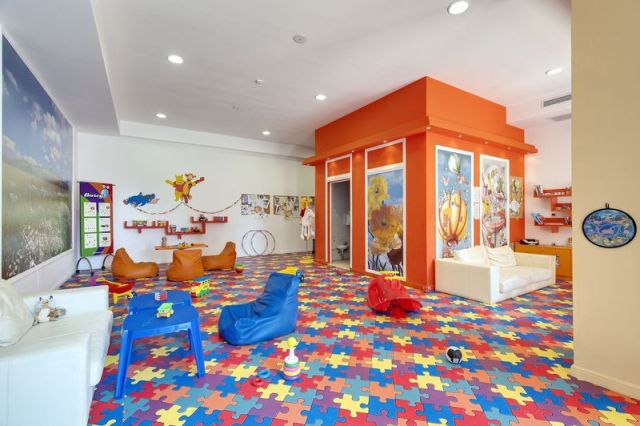 бассейн, игровая площадка и комната, анимация, кроватка, услуги няни (€, по запросу), меню