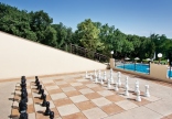 200 номеров; открытый бассейн (шезлонги и зонтики), Wi-Fi в лобби, услуги прачечной и химчистки (€), оплата кредитными картами (Visa, MasterCard, ЕuroCard, Diners), парковка