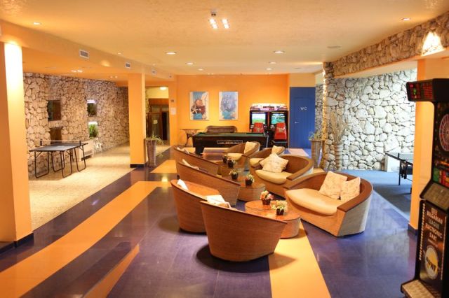 бассейн, игровая площадка и комната, кроватка, меню, услуги няни (€, по запросу), прокат колясок (€)