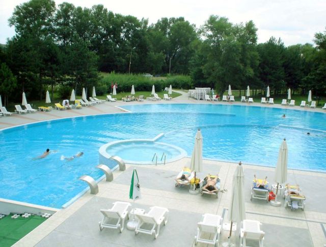 закрытый бассейн, джакузи, сауна с бассейном, вертикальная парная кабина, контрастный душ и классический тангентор, комбинированные ванны с жемчужными и гидромассажными дюзами, музыкой и светотерапией; каждая ванна располагает свыше 10 видов терапевтических программ плюс контейнер для арома- и альготерапии; все приборы используют лечебную силу хисарской минеральной воды