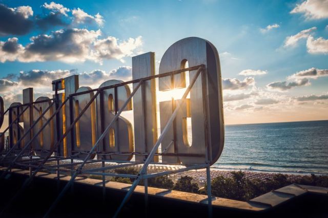 муниципальный, песчаный в 80 м от отеля; лежаки и зонты (€)