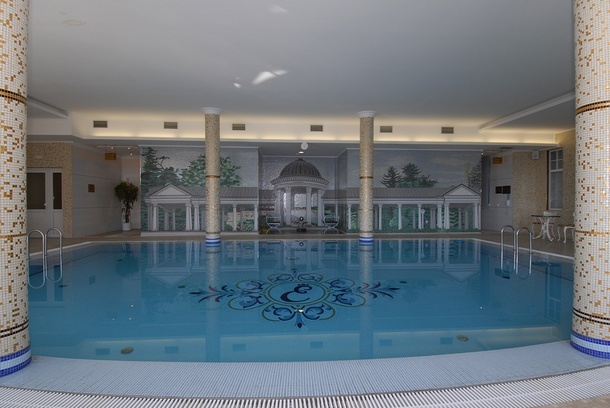 Отель находится в тихом спокойном месте с видом на курорт, неподалеку от гольф-поля, в пешей доступности от питьевой колоннады.