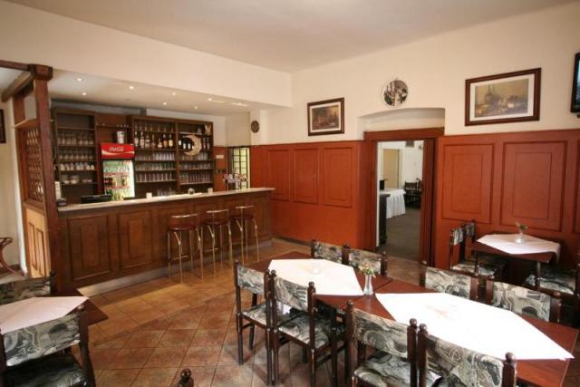 в ресторане и баре предлагается как традиционно чешская, так и международная кухни, а так же широкий ассортимент напитков и, конечно же, качественное чешское пиво («Приматор», включая специальное пиво пивоварни Наход, безалкогольную Малиновку, а так же пиво Фабиан с Гостомецкой пивоварни включая другие сорта пива, вина, безалкогольных, холодных и горячих напитков, качественный кофе). В выходные дни ресторан работает для ранее заказанных мероприятий