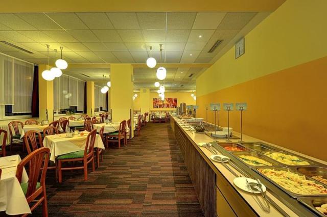 в 2 ресторанах отеля Bohemia и Bellevue по системе «шведский стол» подают завтрак, обед и ужин. В ресторанах готовят традиционные чешские фирменные блюда и разнообразные блюда интернациональной кухни. На 6 этаже располагается летняя терраса. На территории работает кафе-бар