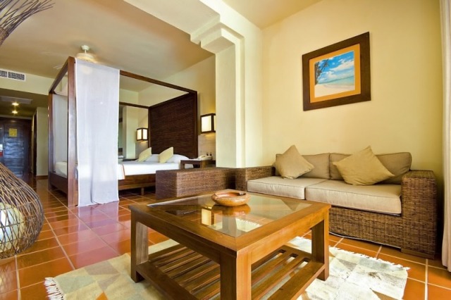 ванная комната с ванной круглой формы, кровать king-size, зона гостиной, фен, кондиционер, потолочный вентилятор, телефон, кофеварка, мини-бар, сейф, wi-fi, ТВ, CD, DVD, пляжные полотенца в номере, балкон с гамаком
