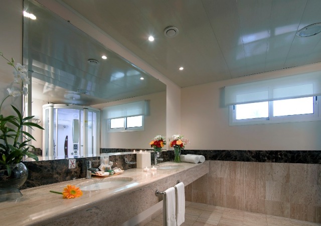 ванная комната (ванна или душ с гидромассажем), фен, кондиционер, ТВ, телефон, утюг ($), мини-бар (заполняется 3 раза в неделю), кофеварка, сейф, балкон/ терраса