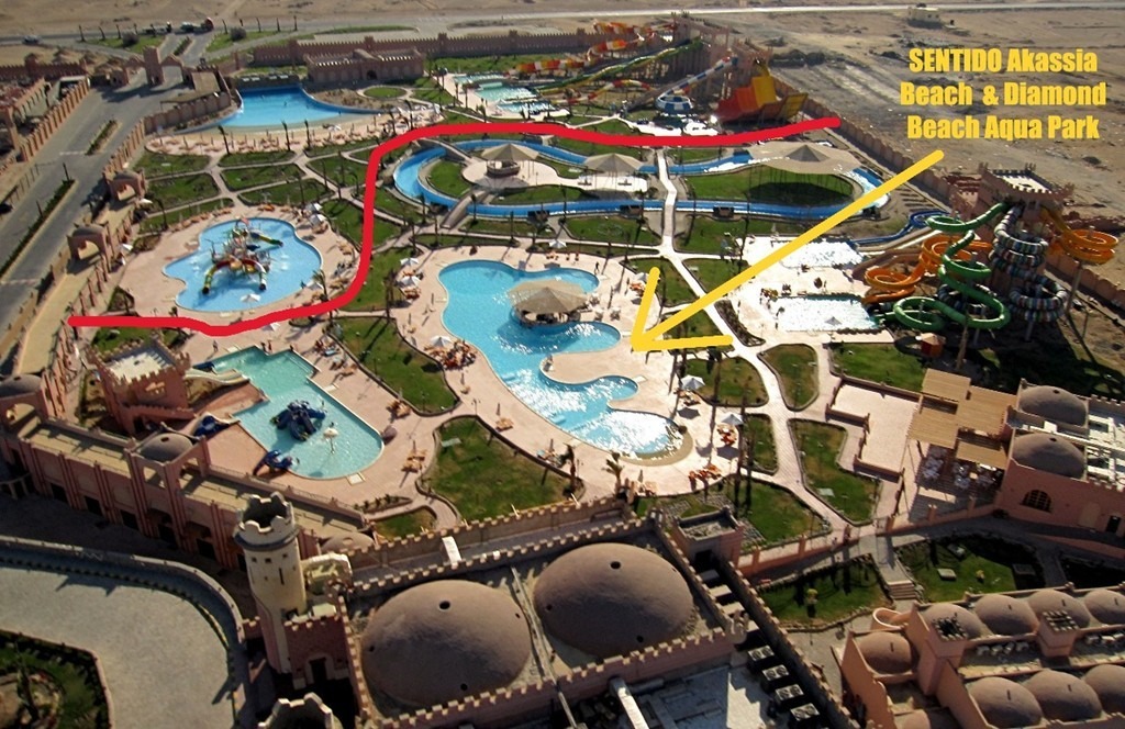 01.09.2025. Аквапарк в отелях Sentido Akassia Beach и Diamond Beach by Pearl Resorts будет разделен между ними (Sentido Akassia Beach и Diamond Beach) и Akassia Swiss Resort с 01 ноября 2025 г. (фото). На карте: красная линия — обозначает границу между двумя объектами, жёлтая линия — обозначает участок, который будет принадлежать Sentido Akassia Beach и Diamond Beach by Pearl Resorts.