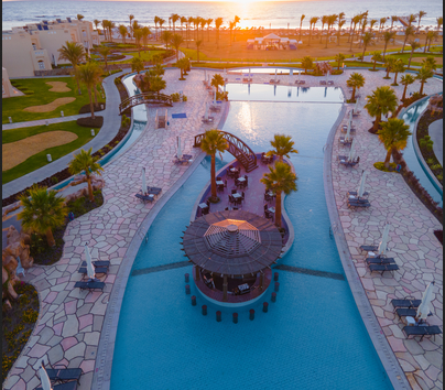 Отель расположен между морем и пустыней. Он состоит из административного двухэтажного здания и 9 трехэтажных корпусов. Отель построен в 2021 г.