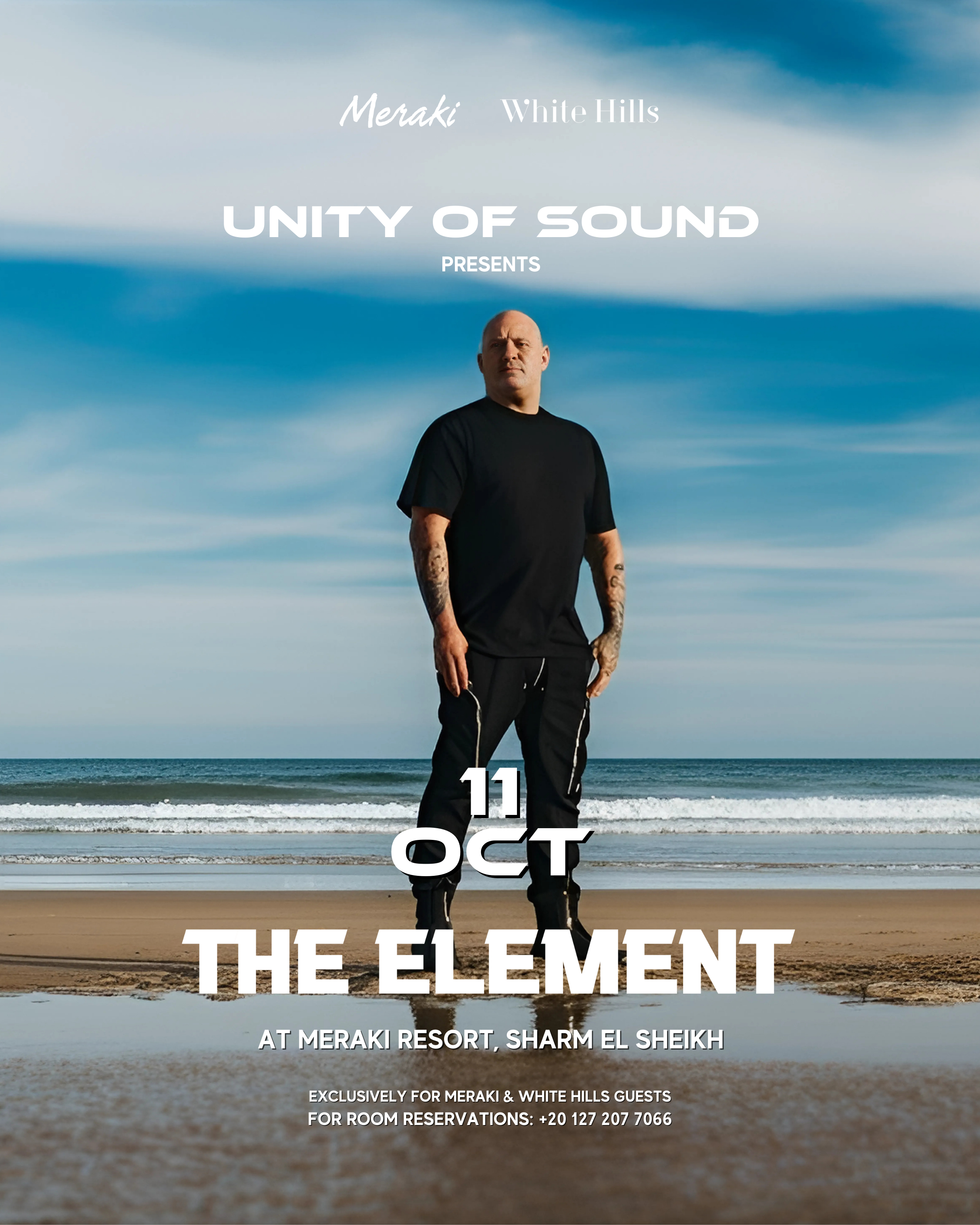 14.09.2025. Выступление DJ The Element состоится 11 октября 2025 г. (афиша). Мероприятие бесплатно для всех взрослых гостей, проживающих в отелях Sunrise White Hills и Sunrise Meraki в Шарм-эль-Шейхе. Место проведения: Floaters Pool, Meraki Resort Sharm EL Sheikh (17:00-22:30). Напитки: бесплатные напитки, проживающим по системе «Все включено». Программа мероприятия: DJ Miss Ellie, DJ Vito, DJ K77, DJ The Element. After Party в клубе Vibe: бесплатный вход для всех гостей Sunrise, один бесплатный напиток, VIP-доступ (гостям Utopia доступ в VIP-зону, включая напитки).