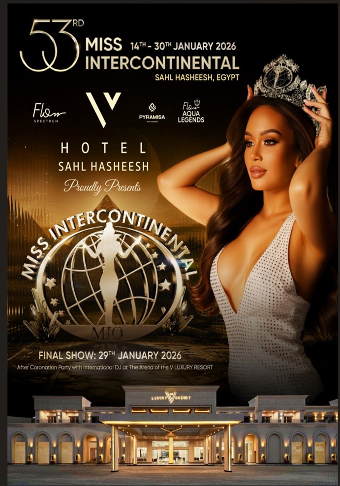 30.10.2025. Конкурс Miss Intercontinental (афиша) пройдёт в отелях V Hotels Shal Hasheesh (The V Luxury, Pyramisa Beach, Flow Spectrum и Flow Aqua Legend) с 14 по 30 января 2026 г. Финальное шоу состоится 29 января 2026 г.