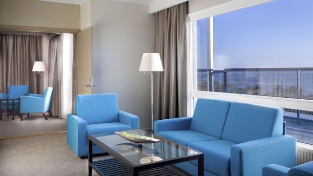 Suite (59,7 м2): двухкомнатный номер, терраса с видом на море, ванная комната с сауной, халат, тапочки, фен; максимальное размещение 2 взр. и 3 ребенка до 17 лет
