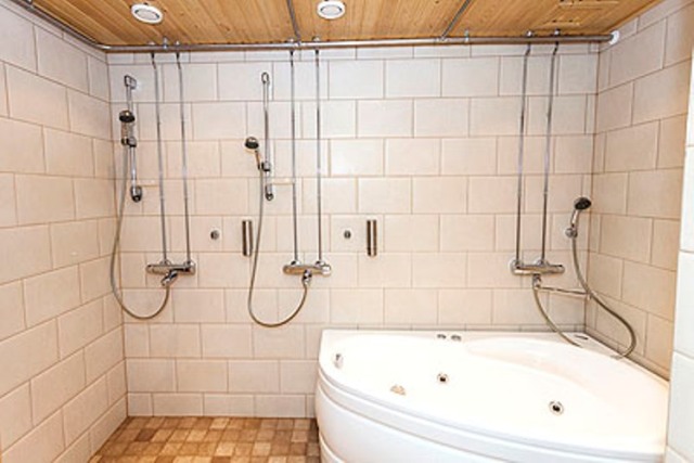 На цокольном этаже: спальня с 2-мя кроватями (есть маленькое окно), сауна, душ, туалет, ванна-джакузи