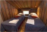 В коттедже: площадь: цокольного и первого этажей 98 м2, верхний этаж 41 м2; спальни: 4, из них 3 со скатной крышей на верхнем этаже, открытое помещение наверху; спальные места: в спальнях по 2 односпальные кровати, на открытом лофте 1 односпальная кровать; туалеты: 3, по одному на каждом этаже; сауна: дровяная/ электрическая, 2 душа в душевой