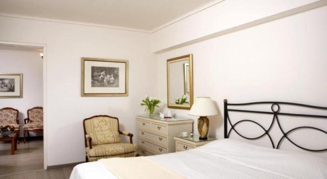 Из окон этого 4-звездочного отеля можно полюбоваться панорамным видом на залив Сароникос.