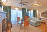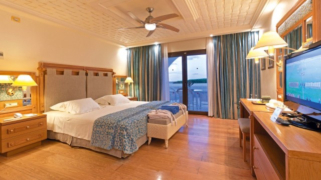 центральный кондиционер c индивидуальным управлением (середина мая - середина сентября), телефон, доступ к интернету, спутниковое телевидение с российским и музыкальным каналами, сейф, холодильник/мини-бар (по запросу, содержимое платно), ванная комната: ванна, фен, тапочки, косметические принадлежности; балкон/терраса. Дополнительно в виллах: CD-плеер (кроме Junior Suite Sharing Pool), Wi-Fi (200 МБ в сутки/устройство - бесплатно); ванная с джакузи, мини-бар (платно); за исключением Junior Suite Sharing Pool и Knossos Suite Sharing Pool: эспрессо-машина, домашний кинотеатр, набор для чистки обуви, в ванной комнате душ. Дополнительные услуги: экспресс-регистрация; обслуживание официантом на частном пляже и у бассейна (по запросу); свежая пресса (по запросу). Ежедневно: тарелка с канапе и традиционными сладостями (кроме Junior Suite)