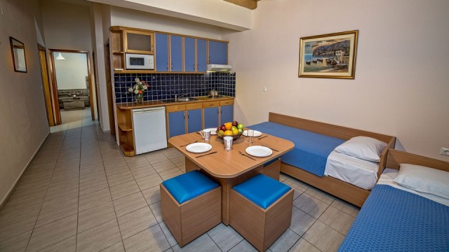 - Организация питания: центральный ресторан (08:00-10:00, 13:00-14:30, 19:00-21:30): завтрак, обед и ужин - "шведский стол" с блюдами традиционной греческой и международной кухни, ассортиментом салатов, закусок и десертов.