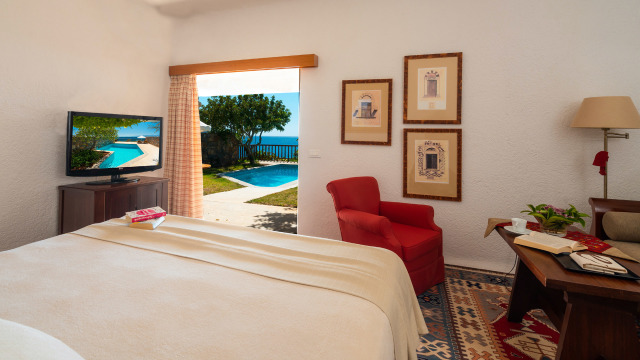 Superior Private Seawater Pool Sea View (35-55 м2) - однокомнатный номер зона спальни и гостиной ( в некоторых номерах между спальней и готсиной дверь), с видом на море и выходом к частному бассейну