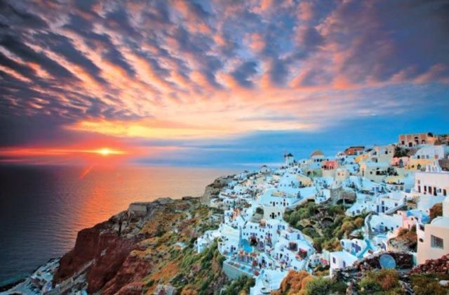 Санторини (Греция) — это остров, который лишен какой-либо растительности. С виду это безжизненный скалистый остров. Своими формами он обязан извержению вулкана, который проснулся около тысячи лет назад и оставил после себя не застывшую лаву, а изумительный каменный шедевр, некую царственную кальдеру, которая местами достигает высоты в 3000 метров. Но остров Санторини известен, прежде всего, своими знаменитыми белыми домиками, спускающимися по склону прямо к морю, и образующими невероятной красоты пейзаж — тот, что можно увидеть на открытках.