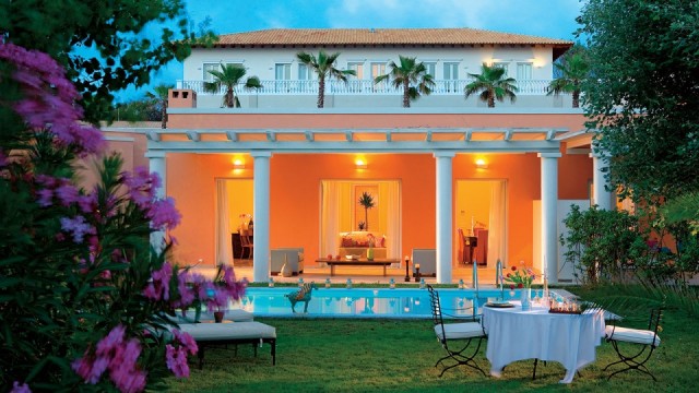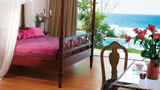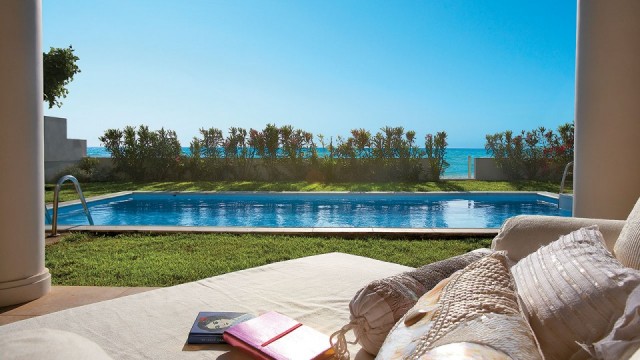 Villa Iolas Private Pool (125 м2): вилла на пляже, 2 спальни, гостиная, 2 двуспальные и 2 односпальные кровати, летняя терраса с бассейном 32 м2, 2 ванные комнаты, вид на море. Максимальное размещение – 4 взр. и 2 реб.