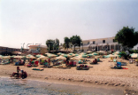 пляж песчано-галечный; лежаки и зонтики (€)
