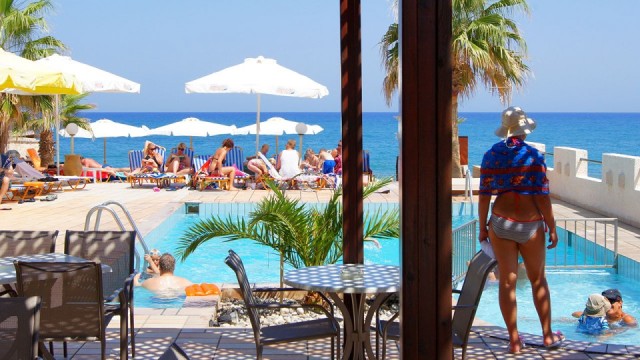 - организация питания: центральный ресторан (07:30-10:00, 12:00-13:00, 18:30-21:00): завтрак, обед и ужин - "шведский стол". Напитки во время обеда и ужина в центральном ресторане: домашнее вино, разливное пиво, раки, узо, прохладительные напитки, кофе-фильтр, чай.