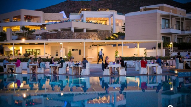 рестораны: центральный ресторан Symposium: завтрак, обед, ужин - "шведский стол" с выбором греческих продуктов, кулинарное шоу; a la carte ресторан критской кухни Elia, греческая таверна/ресторан средиземноморской кухни Kulinarium, арт-ресторан Gallery для обладателей карты Royal Blue Card,