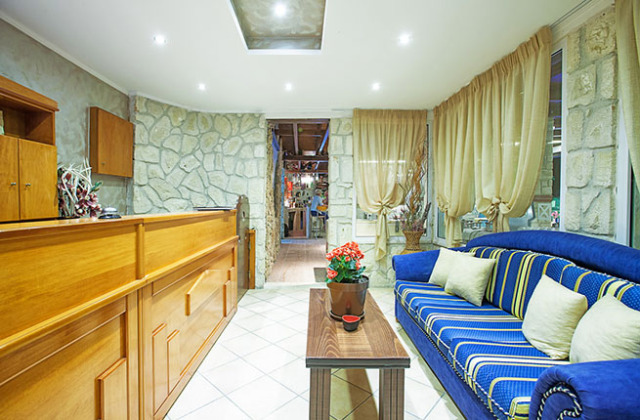 64 номера; открытый бассейн с морской водой, wi-fi в лобби, обмен валюты, услуги прачечной (€), сейф на ресепшен (€), парковка, мини-маркет