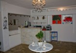 песчано-галечный, 200 метров от отеля необорудованный пляж(спуск вниз по лестнице), 1 км до пляжа Сивири, зонты и шезлонги на пляже (€.)
