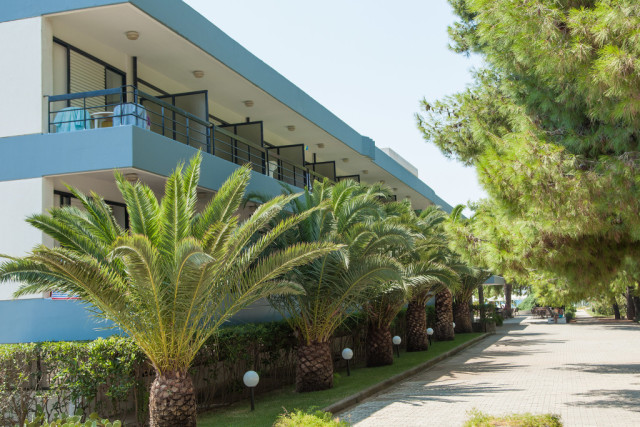 Отель расположен на берегу моря в окружении оливковых деревьев