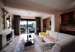 ванная комната с душевой кабиной, фен, халаты и тапочки, оборудованная кухня (керамическая плита, духовка, посуда, кофемашина, тостер, холодильник), кондиционер (тепло/ холод) – в каждой комнате, ТВ с плоским экраном LED 42` - в салоне, wi-fi, камин, шкафы, сейф (по запросу), постельное белье высшего качества, спутниковое ТВ, меблированная терраса с бамбуковой мебелью (диванчик, стол, 6 стульев)
