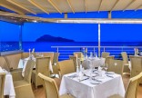 5 ресторанов: Helios & Eros - основной ресторан для завтрака, обеда и ужина в форме "шведского стола" (действует дресс-код), Ikaros - ресторан Roof Garden для проведения тематических вечеров, как например еженедельный греческий вечер, Island - ресторан а-ля-карт, расположенный вокруг бассейна, рядом с баром у бассейна, где на обед гостям отеля предложат широкий выбор легких блюд и закусок, Vythos - ресторан а-ля-карт для проведения тематических вечеров (в высокий сезон), Iris - зал для проведения банкетов; 5 баров: лобби-бар Hermes, бар у бассейна, бар на пляже, бар для проведения тематических вечеров