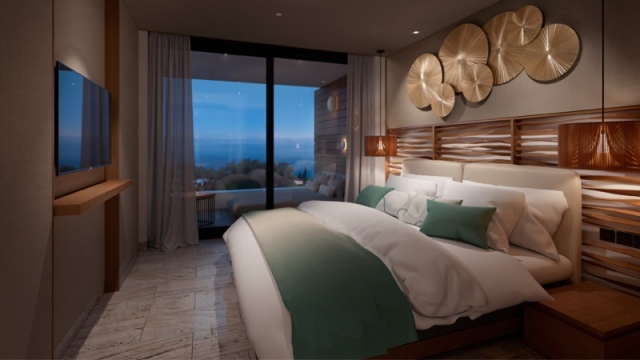 Sea View Junior Suite (67 м2): вид на море, спальня и гостиная, разделенные декоративной перегородкой, осн. кровать – двуспальная кровать, доп. – софа или двуспальный диван, максимальное размещение 4 взр.